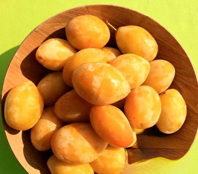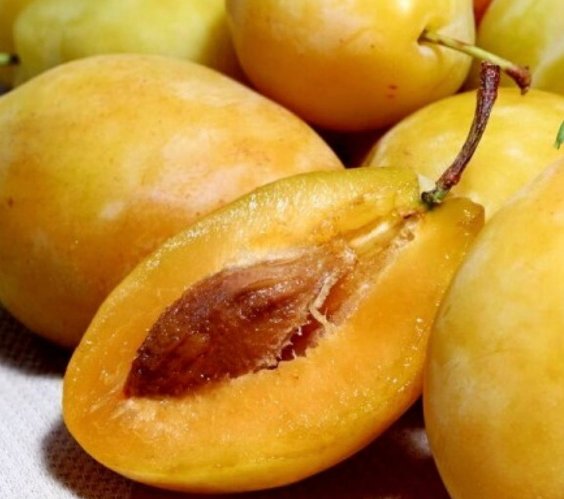 Fructul este de marime mijlocie spre mare 35-45 g, de forma elipsoidala, de culoare galben auriu, cu o nota de roz pe partea insorita. Pulpa este galbena, cu gust dulce armonios, neaderent la sambure.